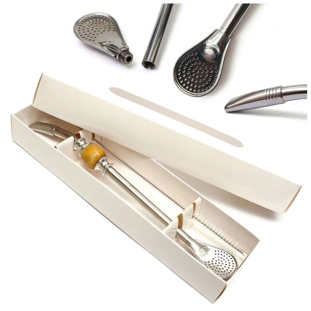 Bombilla LAGRIMA AMARILLO ze szczoteczką (żółty kamień) - dł. 22 cm